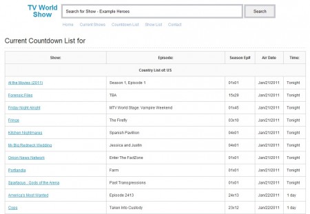 Obećali smo davno objaviti link na ovaj sajt, no zbog miksa obaveza i zaboravljivosti radimo to tek sada. Dakle, TvWorldShow.com je jednostavni sajt / servis sa arhivom serija i rasporedima emitiranja te zgodnom “Countdown Listom” narednih epizoda.